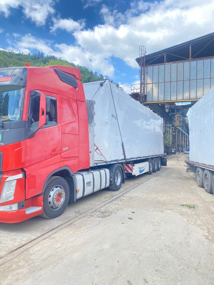 We organized the delivery of two 2.5 MW-class generator units to the Lviv region, Ukraine. Due to the size and weight of each unit, the shipment moved as a coordinated group: the generators on lowbed trailers, supported by additional trucks carrying related components. Because lowbed trailers move slower, the entire group schedule was built around the heavy-haul pace so all vehicles could proceed through the key stages together.